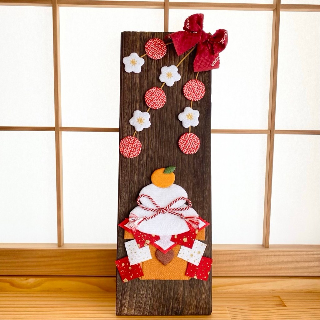 ちりめんや着物の生地を使ってお正月の飾り板を作ります。